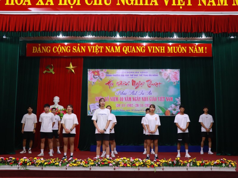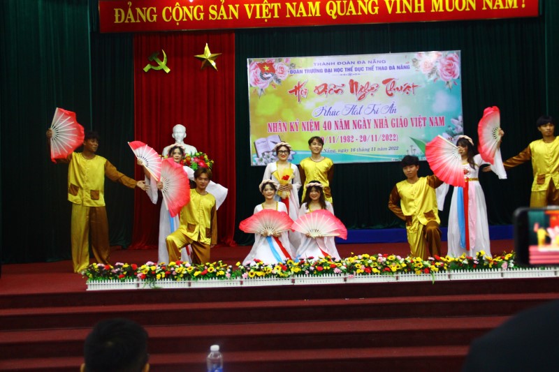 Tối ngày 16/11/2022, được sự cho phép của Đảng ủy, Ban Giám hiệu Trường Đại học Thể dục Thể thao Đà Nẵng, Ban Chấp hành Đoàn Trường tổ chức chương trình hội diễn nghệ thuật với chủ đề “ Khúc hát tri ân”. Đây là chương trình rất ý nghĩa của các bạn đoàn viên thanh niên nhà trường, thông qua lời ca điệu múa, gửi gắm lời tri ân đến quý thầy cô giáo.