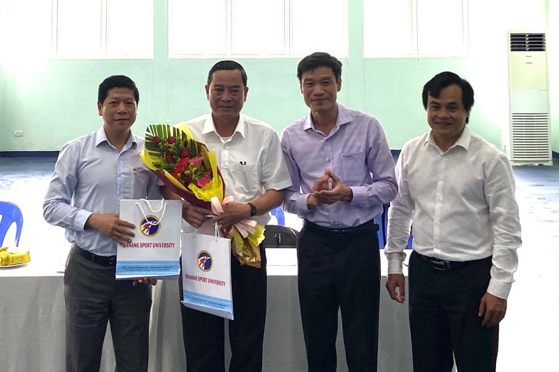 PGS. TS. Phan Thanh Hài - Bí thư Đảng uỷ, Hiệu trưởng Trường Đại học TDTT Đà Nẵng tặng quà lưu niệm cho lãnh đạo Trung tâm Huấn luyện và Đào tạo vận động viên TP, Đà Nẵng