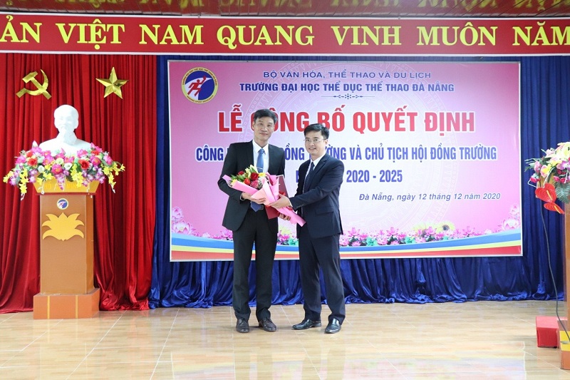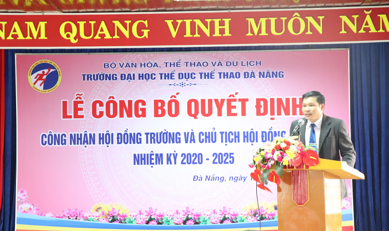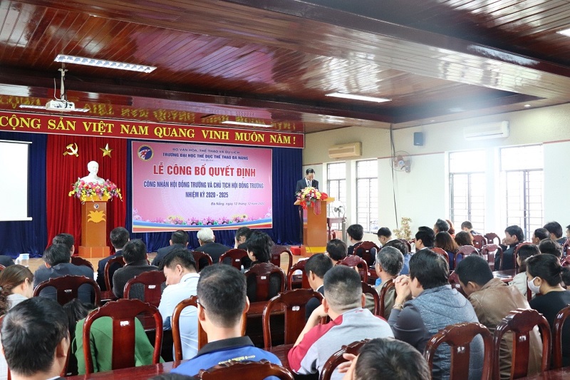 Tại buổi lễ, Đ/c Đỗ Đình Dũng - UV BTV Đảng ủy, Trưởng phòng Hành chính, Tổng hợp Trường Đại học Thể dục thể thao Đà Nẵng, thừa lệnh Công bố Quyết định thành lập Hội đồng Trường Đại học Thể dục thể thao Đà Nẵng nhiệm kỳ 2020 – 2025 gồm 15 thành viên. TS. Nguyễn Văn Long - UV BTV Đảng ủy, Chủ tịch Công Đoàn, phó Giám đốc Trung tâm Giáo dục quốc phòng và an ninh, Trường Đại học Thể dục thể thao Đà Nẵng - Chủ tịch Hội đồng trường nhiệm kỳ 2020 - 2025. Hội đồng trường có chức năng và nhiệm vụ được thực hiện theo Luật sửa đổi, bổ sung một số điều của Luật Giáo dục đại học (Luật số 34/2018/QH14); Nghị định số 99/2019/NĐ-CP ngày 30/12/2019 của Chính phủ quy định chi tiết và hướng dẫn thi hành một số điều của Luật sửa đổi, bổ sung một số điều của Luật Giáo dục đại học; Công văn số 2032/BVHTTDL-TCCB ngày 01/6/2020 của Bộ Văn hóa, Thể thao và Du lịch về hướng dẫn thành lập Hội đồng trường của các cơ sở giáo dục đại học trực thuộc Bộ.
