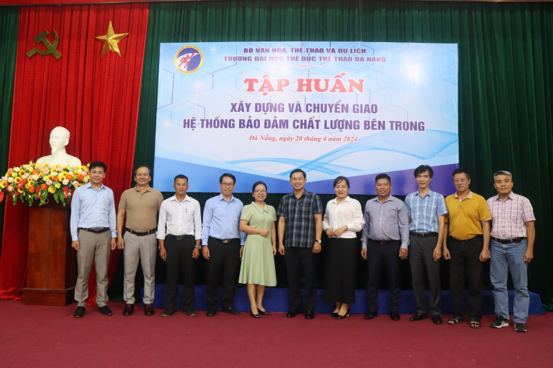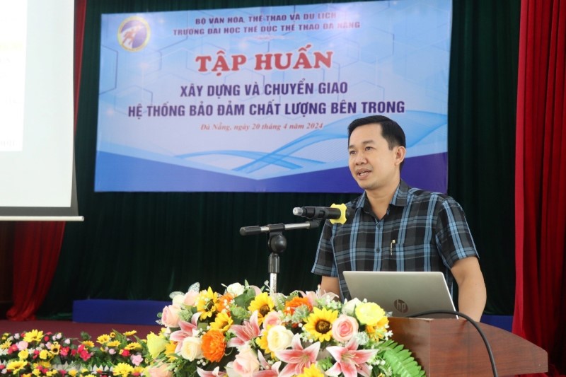 Thực hiện Quyết định số 814/QĐ-BGDĐT ngày 14/03/2024 của Bộ Giáo dục và Đào tạo về việc ban hành Kế hoạch triển khai Quyết định số 78/QĐ-TTg ngày 14/01/2022 của Thủ tướng Chính phủ phê duyệt Chương trình “Phát triển hệ thống bảo đảm và kiểm định chất lượng giáo dục đối với giáo dục đại học và cao đẳng sư phạm giai đoạn 2022 -2030”; nhằm triển khai hệ thống bảo đảm chất lượng (BĐCL) bên trong để góp phần thực hiện Kế hoạch phát triển Trường năm 2024 và Chiến lược phát triển Trường giai đoạn 2021 - 2030; ngày 20/4/2024, Trường Đại học TDTT Đà Nẵng tổ chức Tập huấn xây dựng và chuyển giao hệ thống BĐCL bên trong. Tham dự chương trình tập huấn có TS. Nguyễn Văn Long - Chủ tịch Hội đồng trường, Ban Giám hiệu, Trưởng phó các đơn vị và toàn thể CBVC được triệu tập.