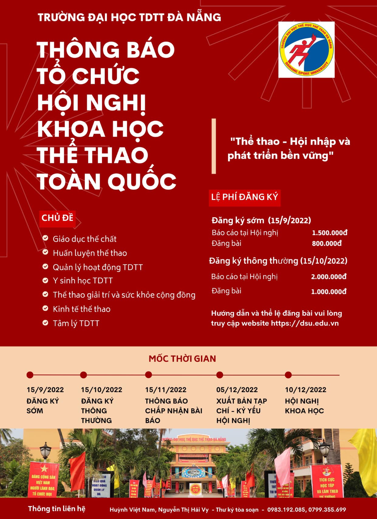8. Nộp tiền đăng bài tạp chí theo tài khoản: Trường Đại học TDTT Đà Nẵng. Tài khoản số: 56010000071619 tại Ngân hàng TMCP Đầu tư và Phát triển Việt Nam (BIDV) - Chi nhánh Hải Vân.