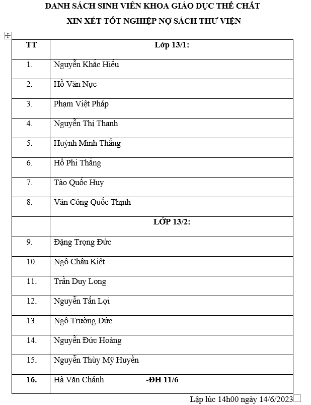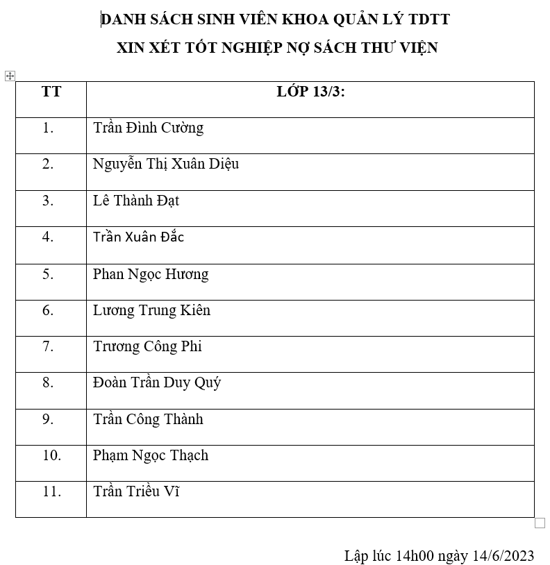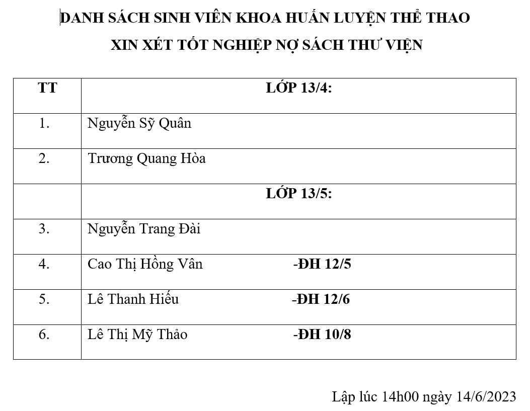 Bộ phận Thư viện thu hồi sách của sinh viên xin xét tốt nghiệp đợt 1 năm 2023 đến hết ngày 30/6/2023. Sau thời hạn đó, Thư viện từ chối nhận sách trả và áp giá bằng tiền mặt, sinh viên phải liên hệ bộ phận Tài vụ nhà trường đền sách để được xét tốt nghiệp.