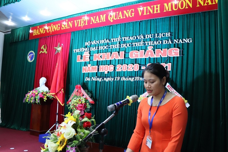 Tiếp đến PGS. TS. Phan Thanh Hài - Bí thư Đảng ủy, Hiệu trưởng Nhà trường phát biểu chào mừng năm học mới 2020– 2021, trong diễn văn có đoạn: “Lựa chọn trường Đại học TDTT Đà Nẵng là các em đã quyết định dành một phần tuổi trẻ ở ngôi trường này. Nhà trường sẽ luôn đồng hành và tạo điều kiện tốt nhất cho các em học tập, rèn luyện và cam kết tạo môi trường học tập lành mạnh, trong sạch, bổ ích cho các em. Thầy kêu gọi các em phát huy hết nhiệt huyết của tuổi trẻ, cố gắng học tập, trau dồi kiến thức, tiếp tục hình thành kỹ năng nghề nghiệp, tích cực tham gia các hoạt động thiện nguyện, bồi dưỡng kỹ năng sống cho bản thân”. Năm học 2019 - 2020 đã đi qua với bao bộn bề khó khăn, thiên tai, dịch bệnh Covid 19 cũng như thách thức trong xu thế chung của toàn xã hội, song tập thể lãnh đạo, cán bộ viên chức, giảng viên và sinh viên Trường Đại học TDTT Đà Nẵng quyết tâm vượt qua khó khăn để đạt được những kết quả trên các lĩnh vực công tác như: Công tác đào tạo; Công tác nghiên cứu khoa học; Công tác tổ chức và kiện toàn đội ngũ; Công tác giáo dục chính trị, tư tưởng…
