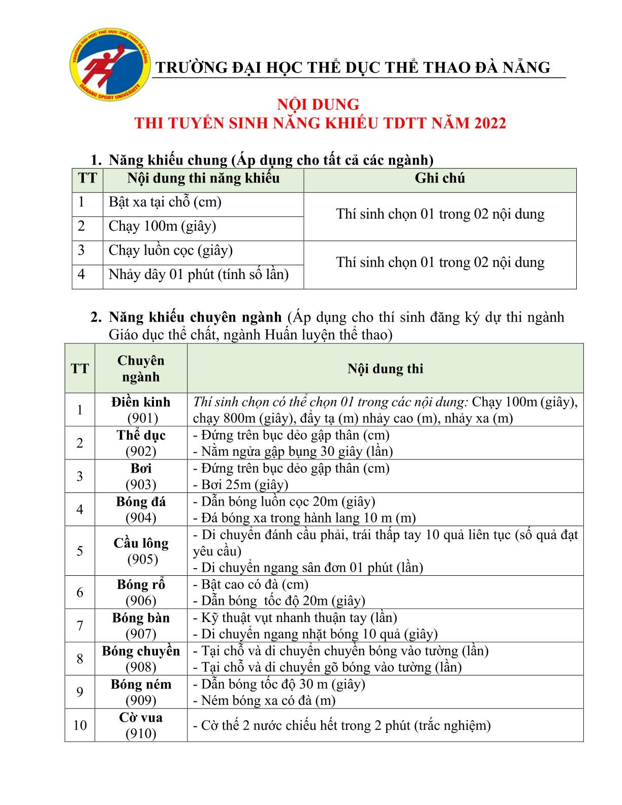 Ngành: Giáo dục thể chất (mã 7140206); Quản lý TDTT (mã 7810301), Huấn luyện thể thao (mã 7810302)