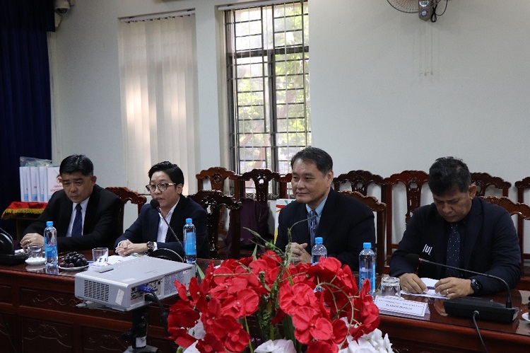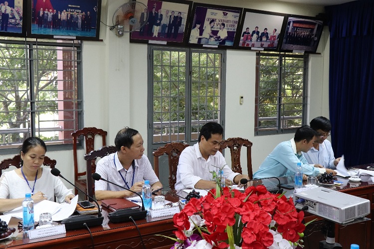 Đón tiếp đoàn do Tiến sỹ Võ Văn Vũ – Phó hiệu trưởng nhà trường và đại diện các trưởng phòng Đào tạo, Quản lý khoa học và hợp tác quốc tế; Hành chính Tổng hợp cùng trưởng, phó các Khoa.